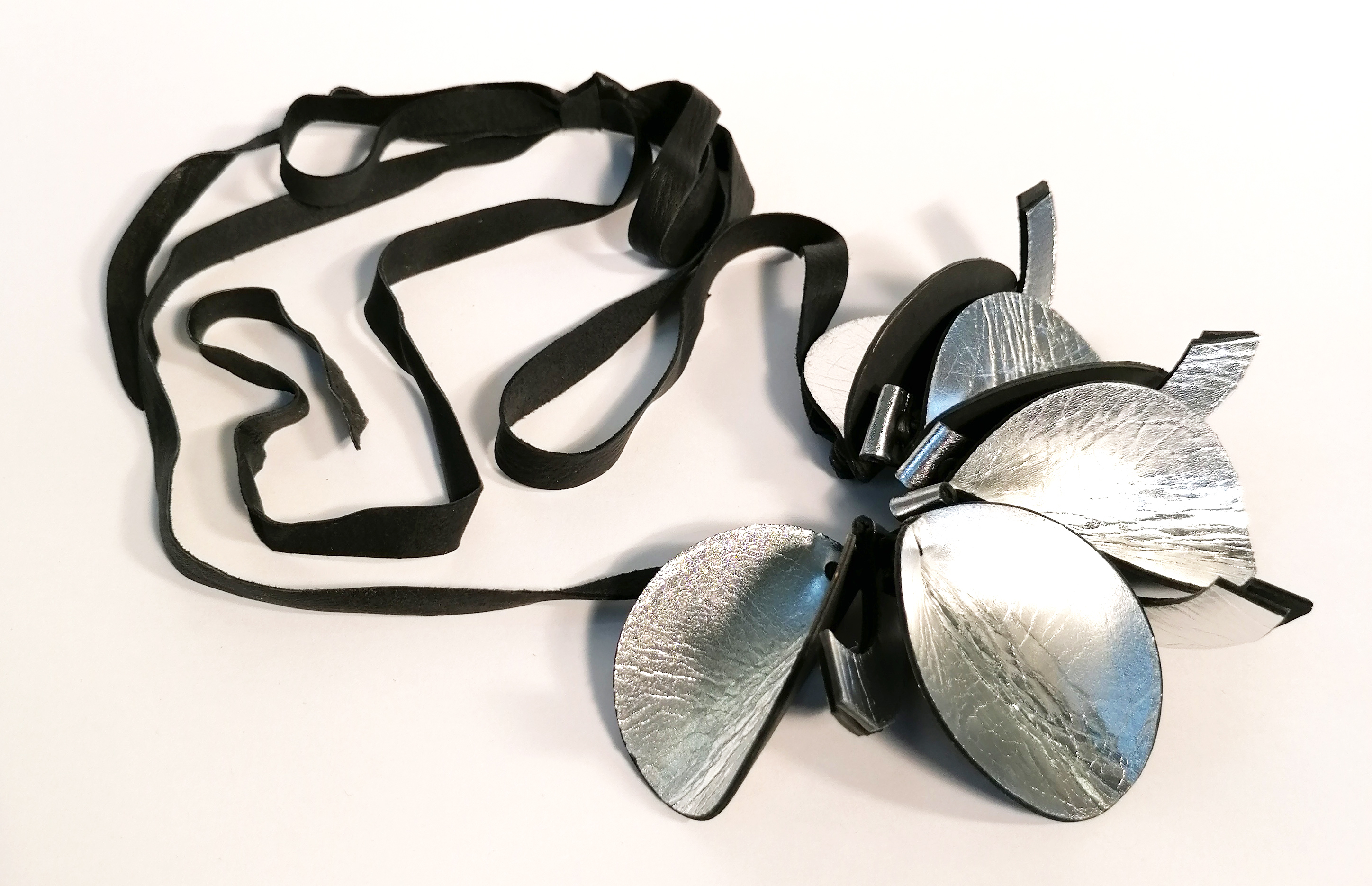 Goargeous, hand made reindeerleather necklace! Long bands/laces makes wearing flexible. You can tie the necklace just the right length according to your outfit. This piece of jewellry is the “cherry on the cake” of your dressy outfit!